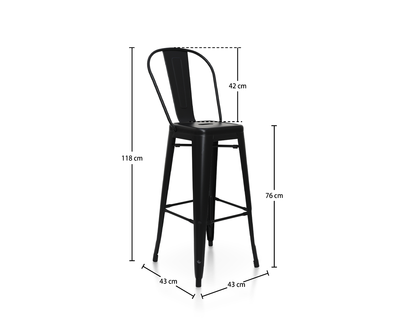 • Ez a Black Metal Barstool háttámlával megkülönböztethetően minimalista, mégis ipari formatervezésű.