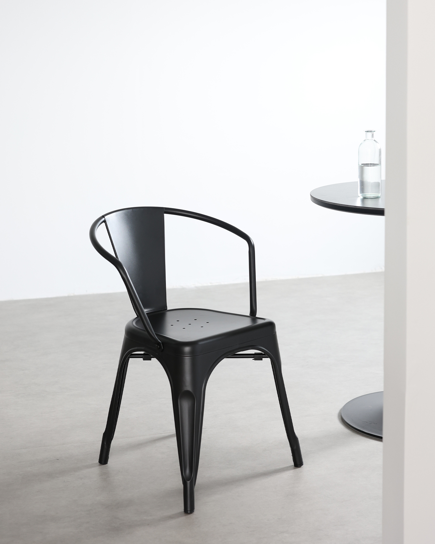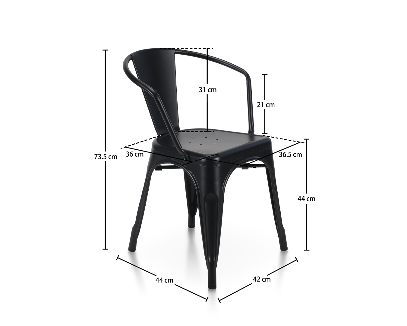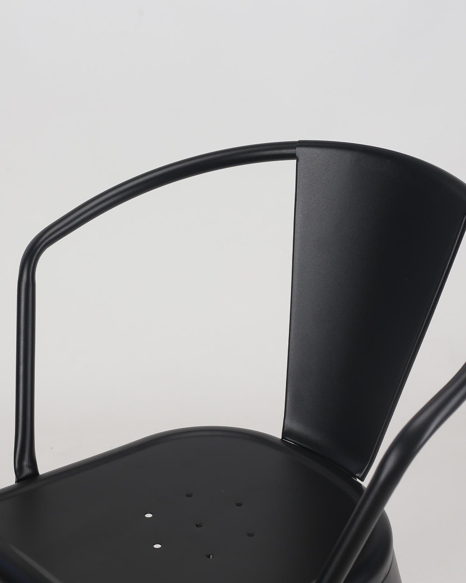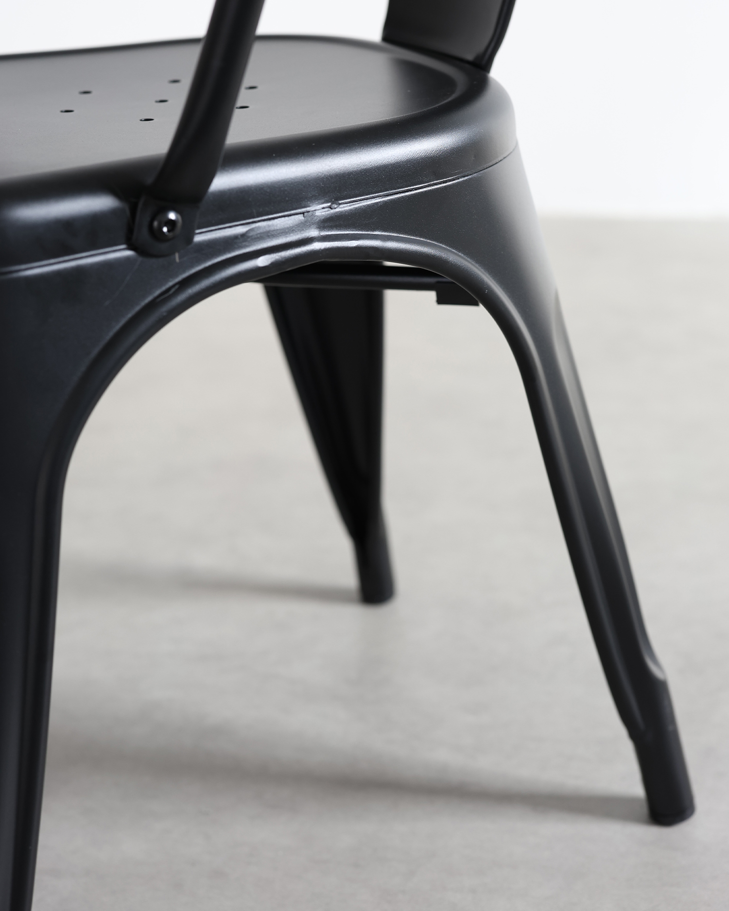 • Ez a szék az ipari formatervezés remekműve, kiváló minőségű vasból készült és karcsú fekete színű, az eleganciát sugárzó. A részletekre való figyelmeztetés minden szempontból nyilvánvaló, a pontos hegesztéstől a keret sima körvonalaiig.