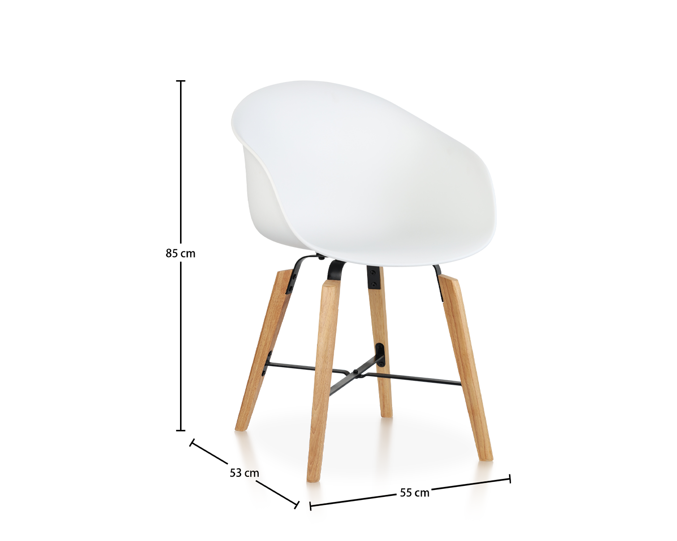 • Az öntött polipropilénből készítve az ülés tartós és könnyen tisztítható. A gumi fa lábak és a fekete porral bevont vascsatlakozók melegséget és kontrasztot adnak a teljes fehér megjelenéshez.