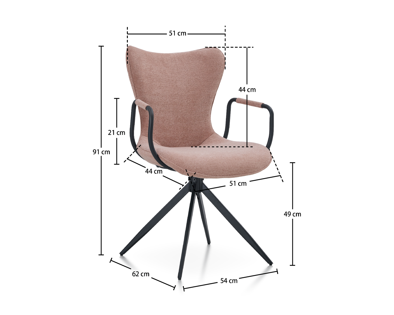 • Egy luxus elpirult rózsaszín szövetbe csomagolva meleg és hívogató hangulatot eredményez. A szék kialakítása elgondolkodva van kialakítva, hogy optimális támogatást és kényelmet biztosítson, így alkalmassá teszi mind a mindennapi használatra, mind a különleges alkalmakra.