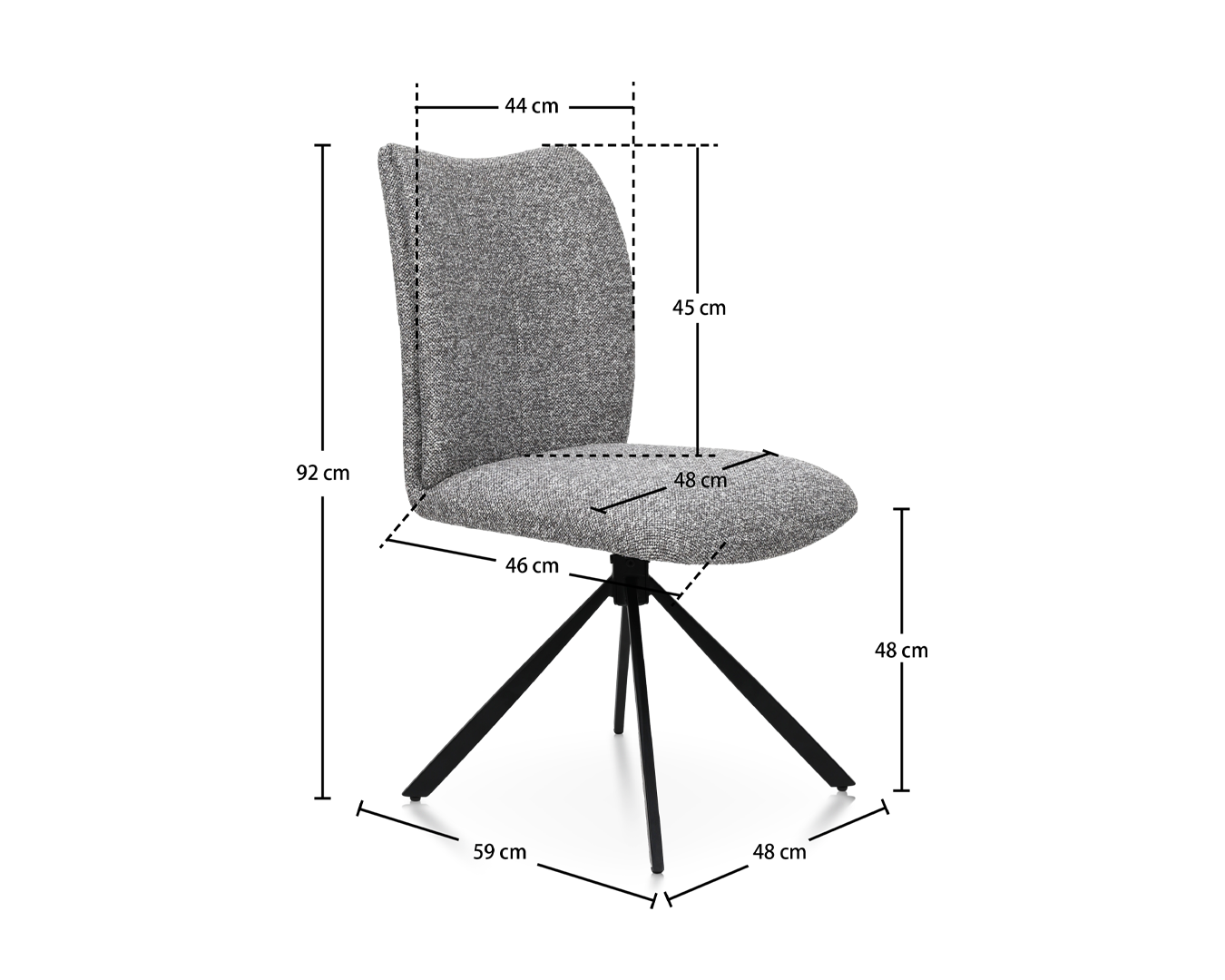 • Karcsú vonallal és kifinomult anyaggal tervezték, ez a szék frissítő, minimalista érintést hoz minden étkezési helyhez. A forgó funkció sokoldalúságot és könnyedséget ad, lehetővé téve a zökkenőmentes mozgást, miközben étkezést vagy beszélgetéseket élvez.