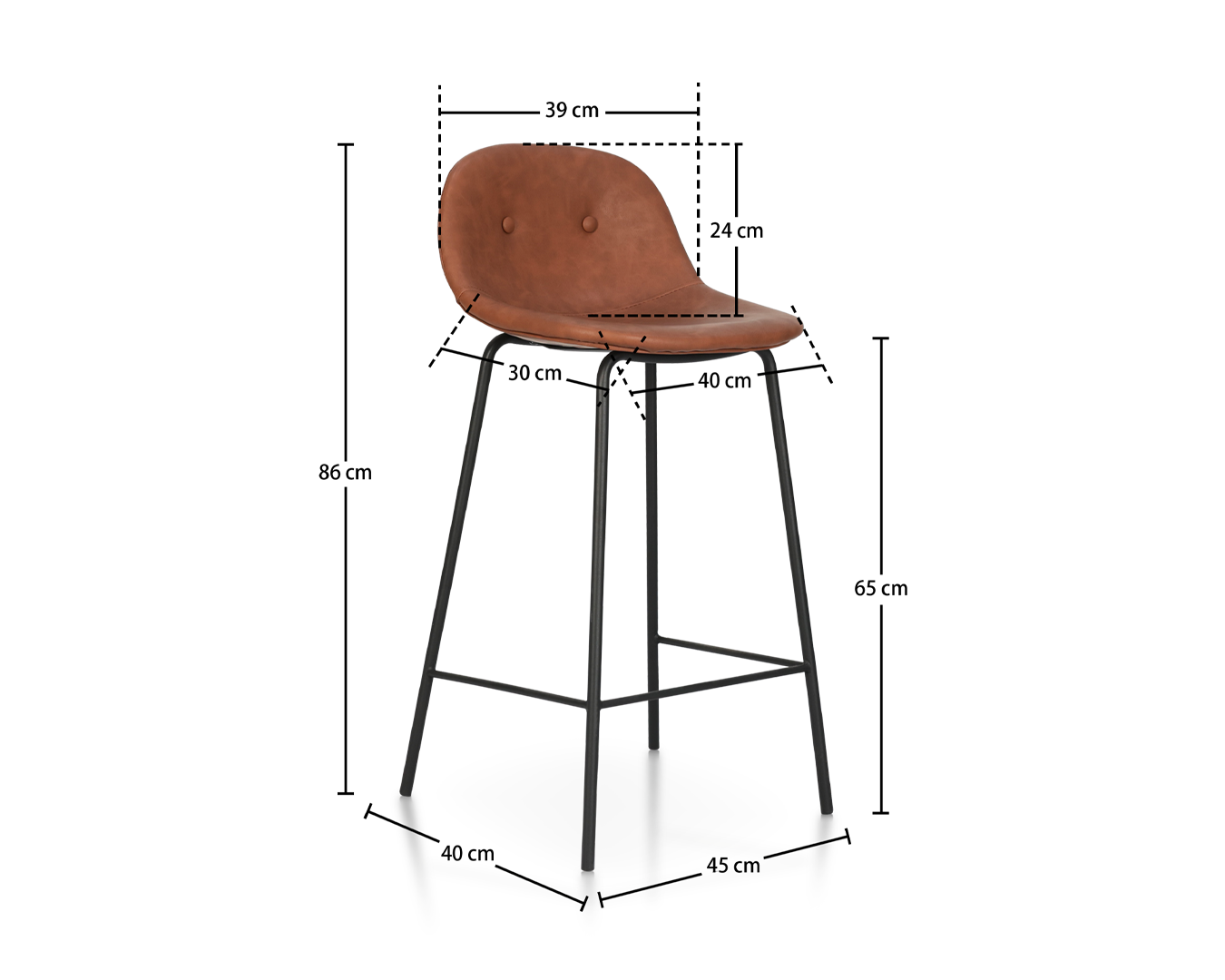 • A széklet mind a forma, mind a funkció szem előtt tartásával tervezve, ez a széklet a kortárs stílus és az időtlen vonzerej keverékét kínálja. A sima bőr kárpitozás puha, és bőséges támogatást nyújt, biztosítva a kényelmet hosszabb időtartamon belül. A minimalista black metal lábak szakszerűen vannak kialakítva, hogy erős alapot biztosítsanak, míg a háttámlán lévő finom gomb részletei a kifinomultsághoz vezetnek.
