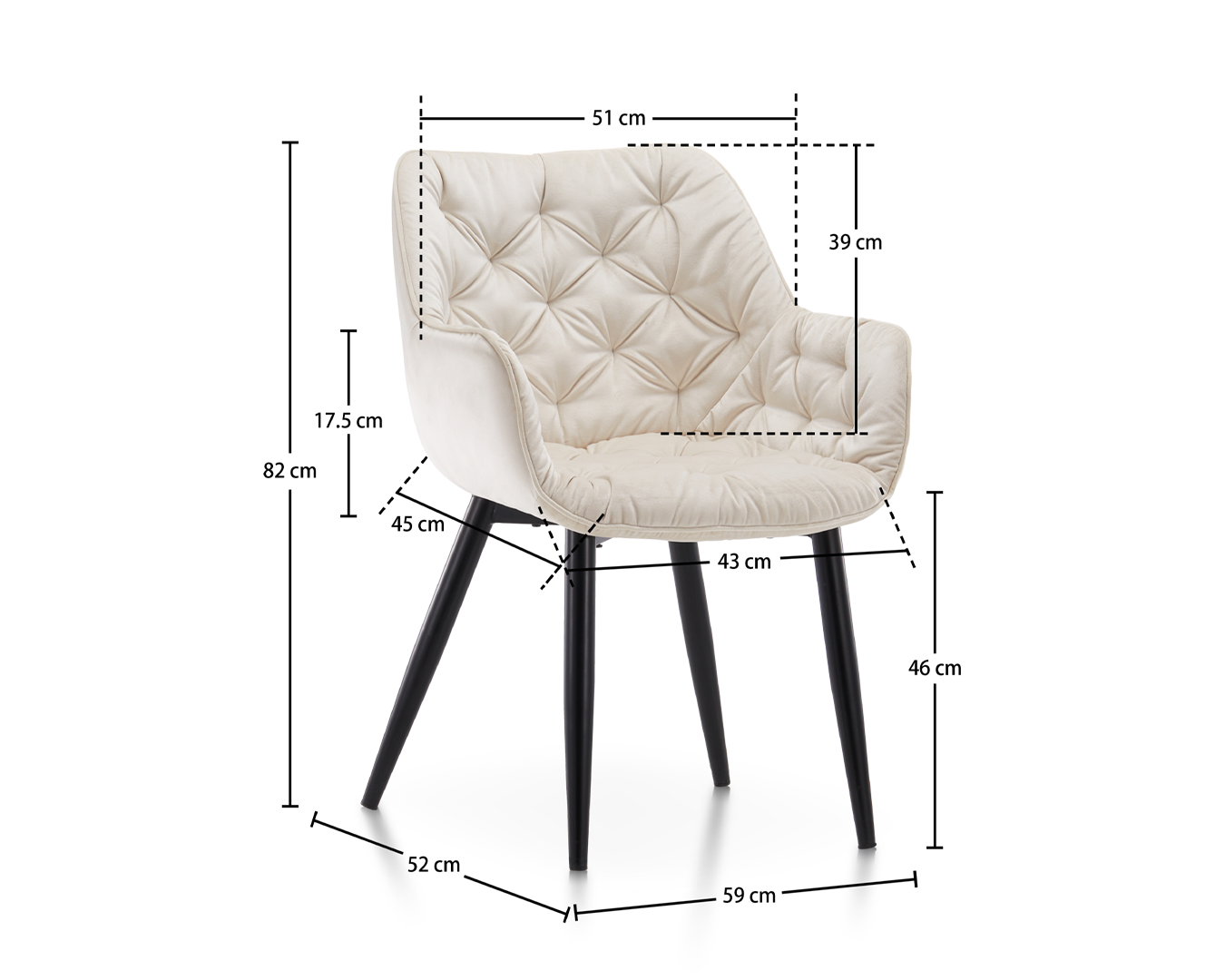 • Függetlenül attól, hogy az étkezőjébe, a nappaliba vagy akár a hálószobájának sarkába helyezi, ez a szék hozzáadja az eleganciát és a kényelmet. A fekete lábak erős alapot és modern esztétikát biztosítanak, így kiemelkedő darab lesz minden belső térben.