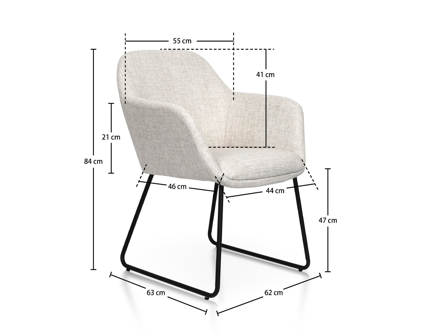 • Elegáns bézs kárpitja biztosítja a maximális kényelmet, míg az ívelt háttámla könnyedén támogatja a gerincét. A szék fekete fém lábai stílusosak és tartósok, biztosítva a stabilitást és a hosszú élettartamot.