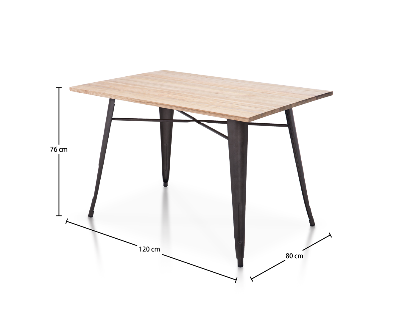 • Az asztallap prémium Elm fából készül, tartósságáról és gazdag textúrájáról ismert. A csiszolt felület kiemeli a fa természetes szépségét, hozzáadva a meleget és a karaktert bármely szobában. A fa tetejét kiegészítő robusztus vas lábak, matt fekete színben készítve, amely modern és ipari érintést jelent. Az anyagok egyedülálló keveréke biztosítja, hogy az asztal ellenálljon a napi használatnak, miközben megőrzi stílusos megjelenését.
