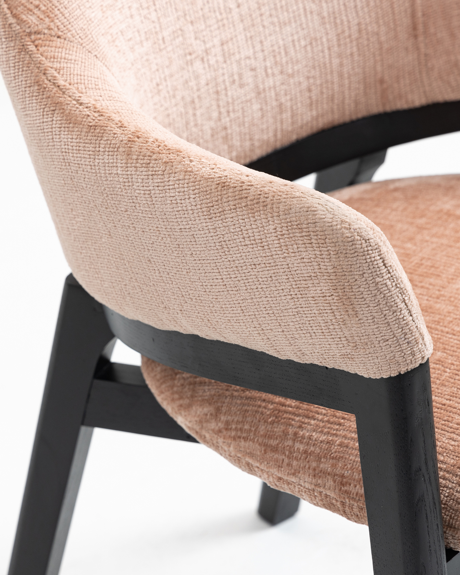 • A szék minden alkotóelemét aprólékosan a képzett kézművesek készítették, biztosítva, hogy az megfeleljen a legmagasabb minőségi és tartóssági előírásoknak. A kőrisfa keret, karcsú fekete színű, kiemeli az anyag természetes szépségét, miközben modern tapintást ad. A plüss, kárpitozott ülés és háttámla kiváló minőségű, puha anyagból készül, amely hívogató és kényelmes.