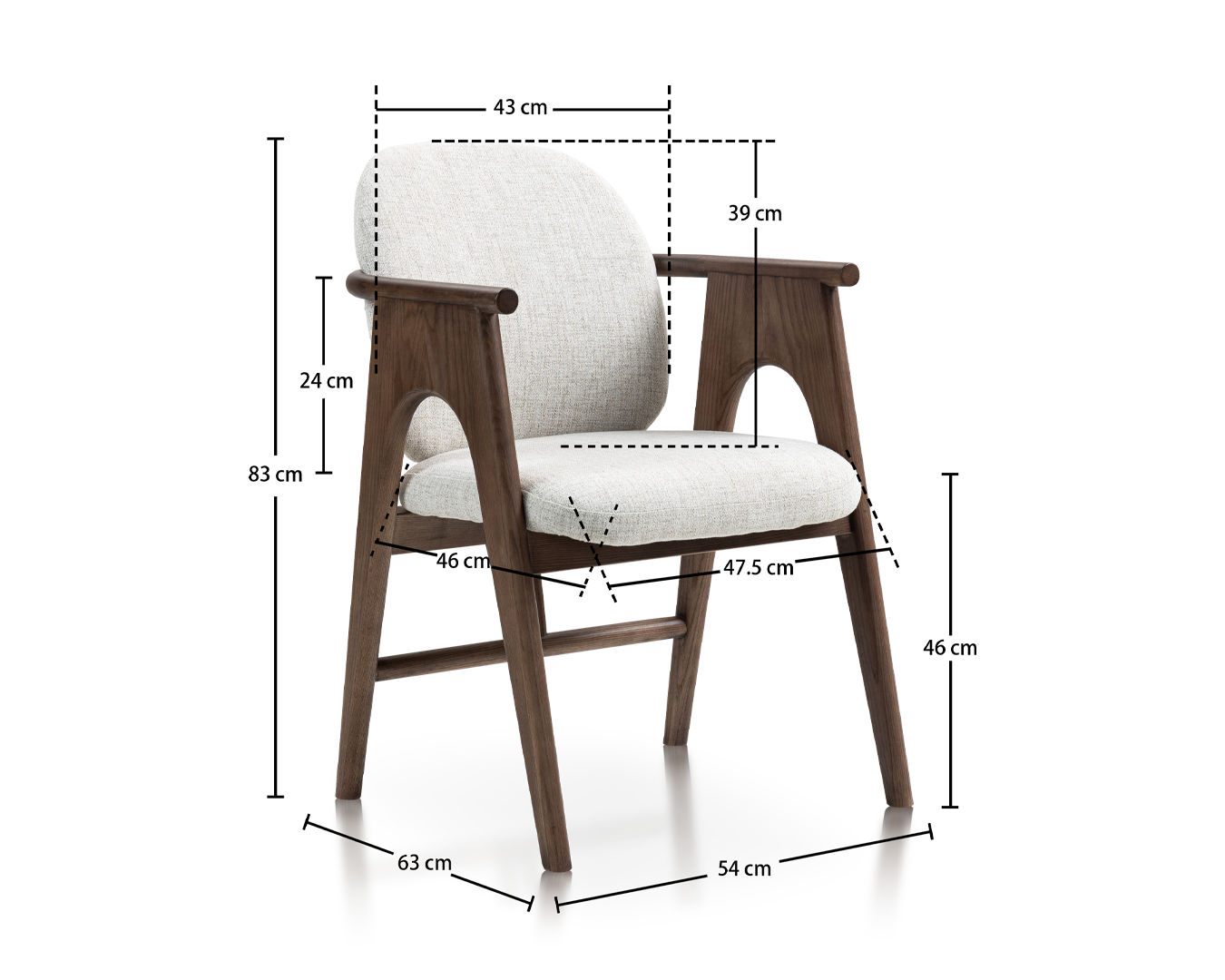 • A kiváló minőségű hamufából készült szék gazdag, meleg felületű, amely hangsúlyozza az anyag természetes szépségét. Az egyedi ívelt kartámaszok mind a stílust, mind a funkcionalitást adják, lehetővé téve, hogy hátradőlj és pihenjen a végső kényelemben.