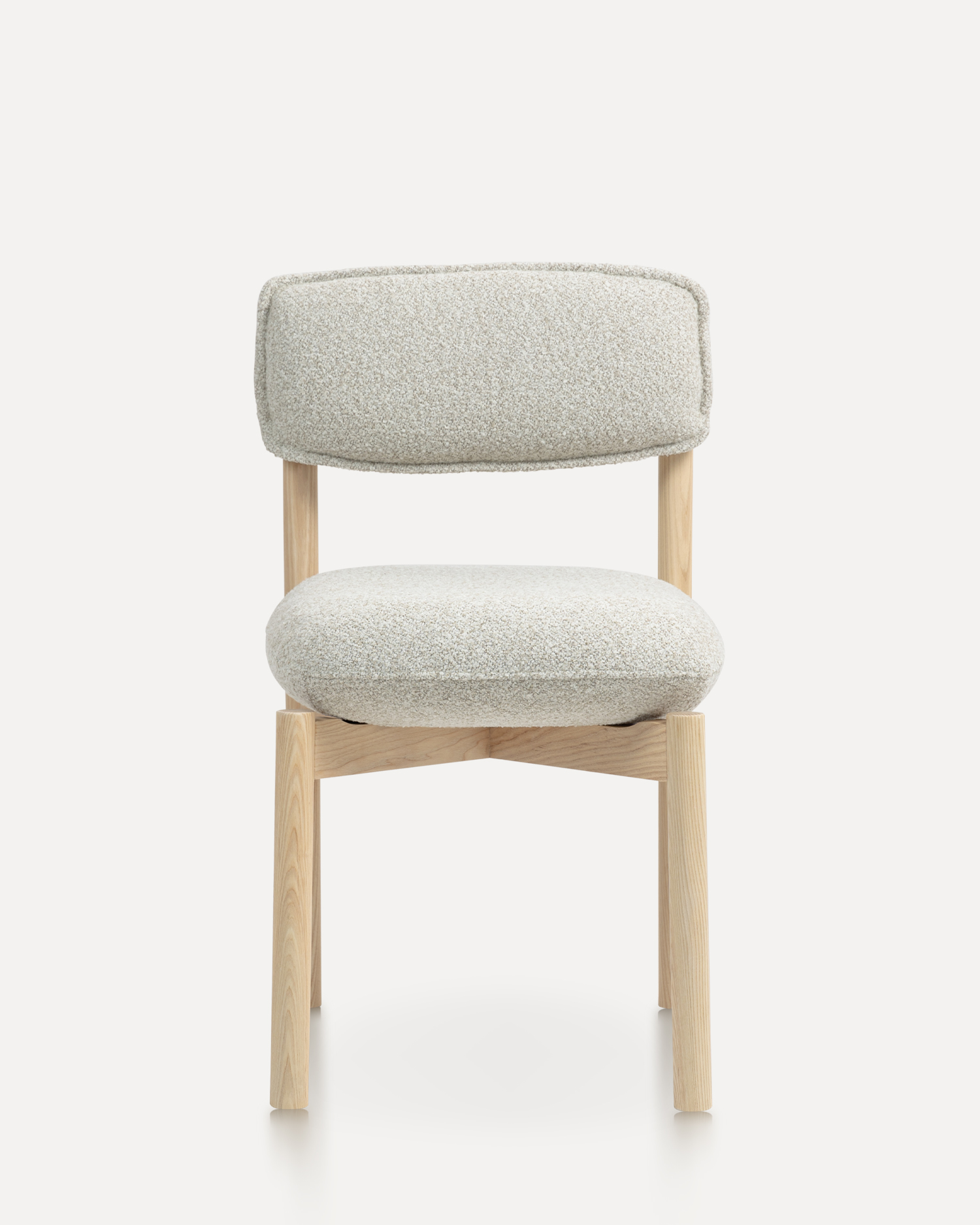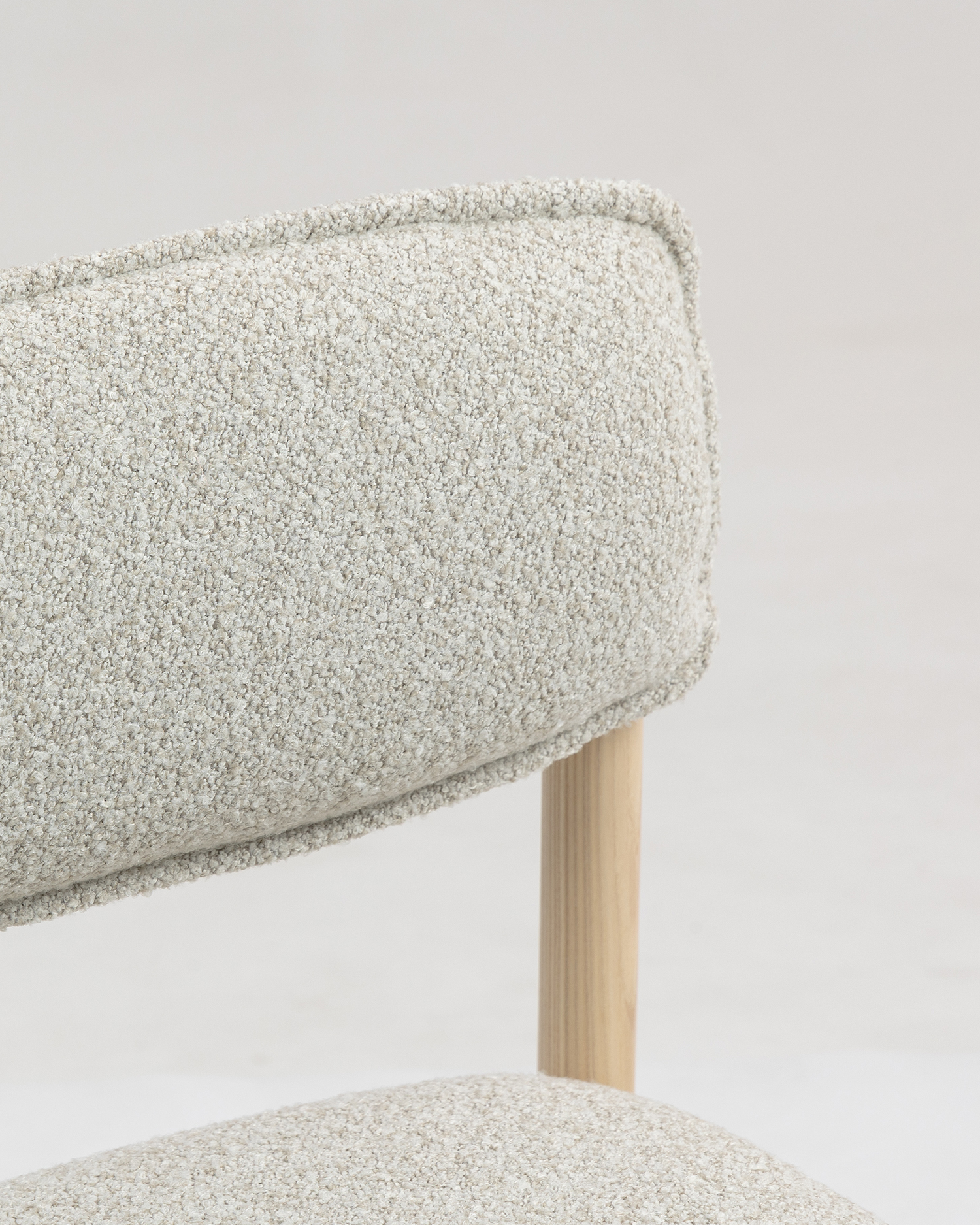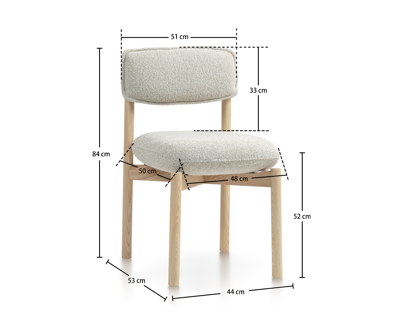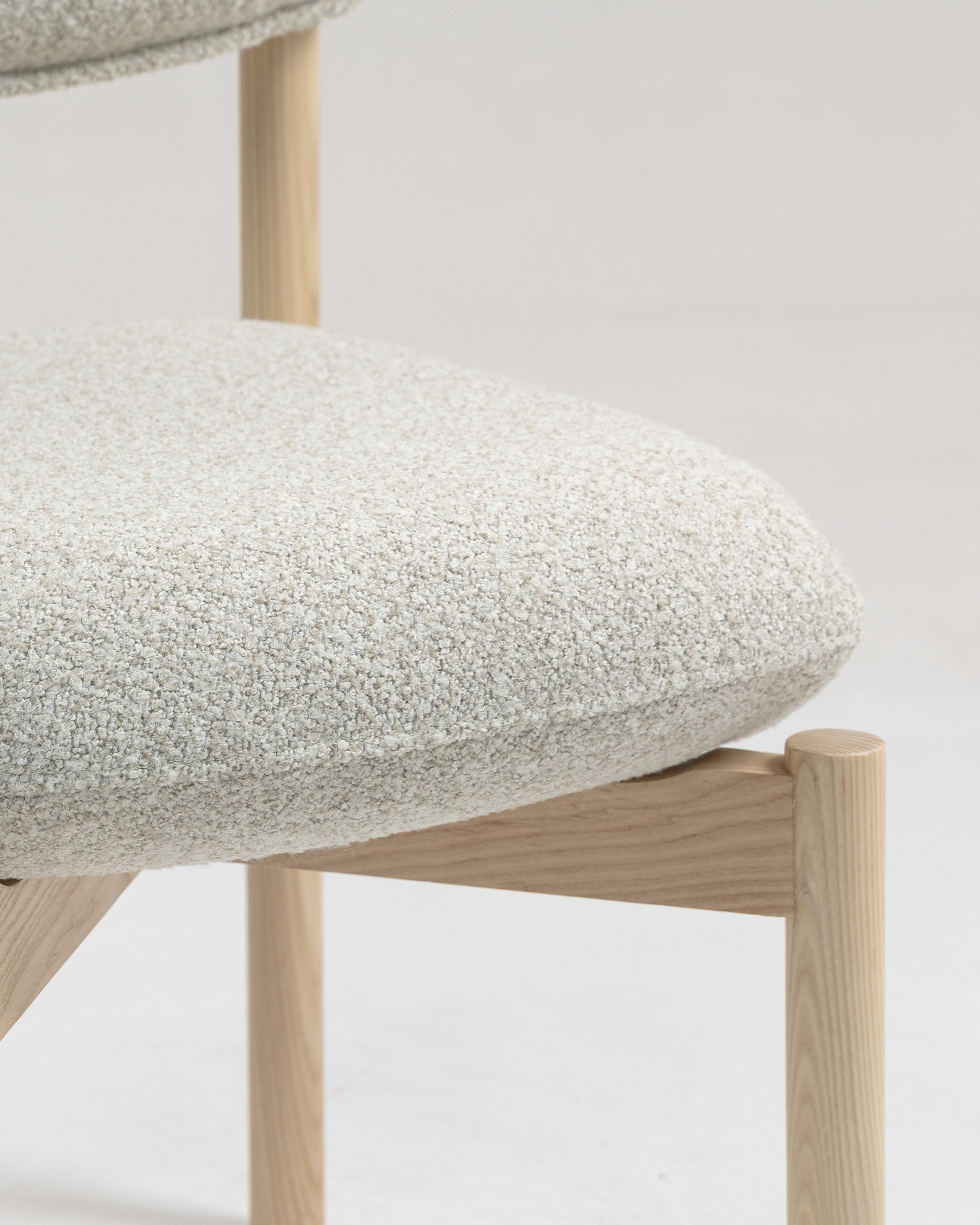 • A kiváló minőségű hamufából készült világos színű kivitel kiemeli az anyag természetes szépségét és gabona mintáit, és hozzáadja a meleget és az eleganciát bármely helyhez. A plüss, kárpitozott ülés és a háttámla a maximális kényelem érdekében készült, biztosítva, hogy hosszabb ideig pihenjen stílusosan. A puha, texturált szövet nemcsak luxusnak érzi magát a bőr ellen, hanem kiegészíti a szék minimalista kialakítását.
