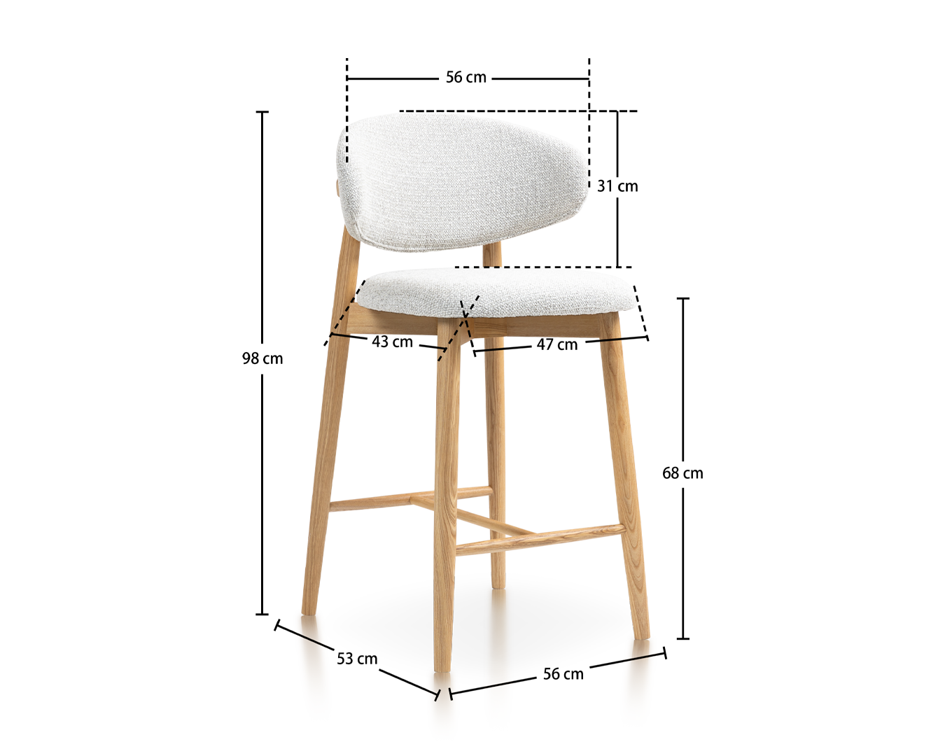• Tartós hamufából készült, és úgy tervezték, hogy tökéletesen párhuzamosan párhuzamosan vagy konyhai szigetekkel párhuzamos legyen. Az erős keret és az ergonómiai ülés biztosítja a tartós támogatást, míg a karcsú kialakítás kiválóan alkalmas a kortárs vagy rusztikus belső terekhez.